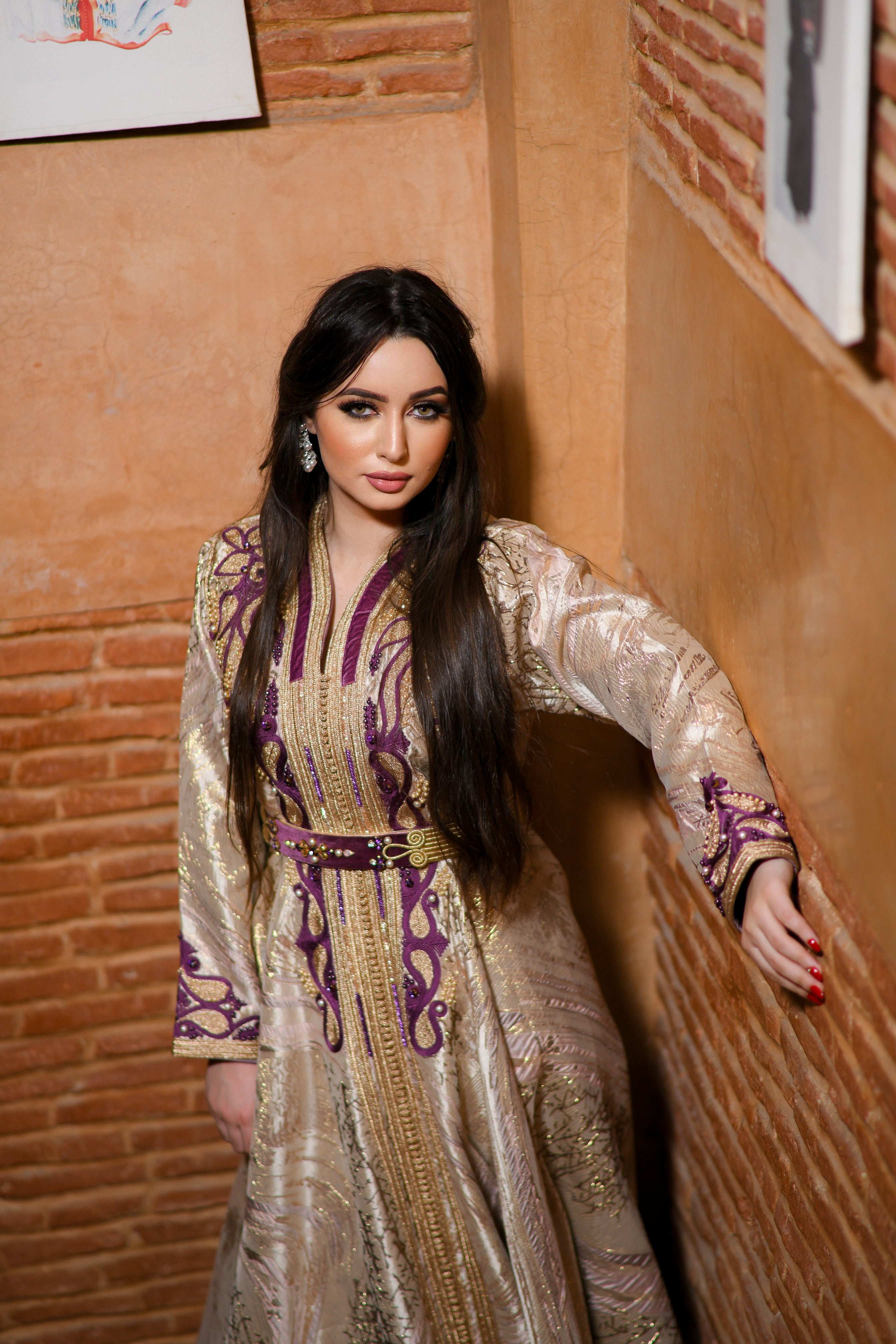 Caftan Amira incarne une élégance affirmée, pensée pour les invitées qui souhaitent se démarquer avec distinction. Sa coupe évasée princesse sublime la silhouette par un tombé fluide et majestueux, offrant une allure royale et féminine.